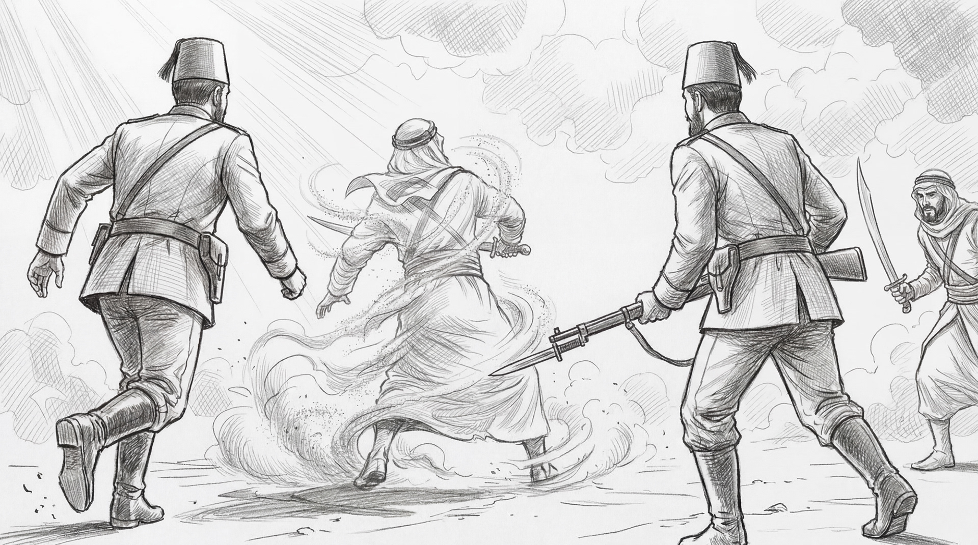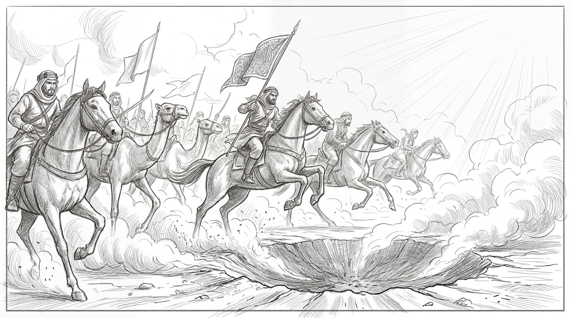 Same scene. Three stages. The storyboard defined the moment. The AI generated it. The timeline assembled it. What started as ink on paper became dust on screen.